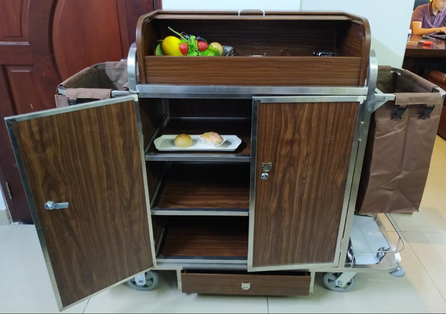 Xe dọn phòng có tủ 2 túi gỗ